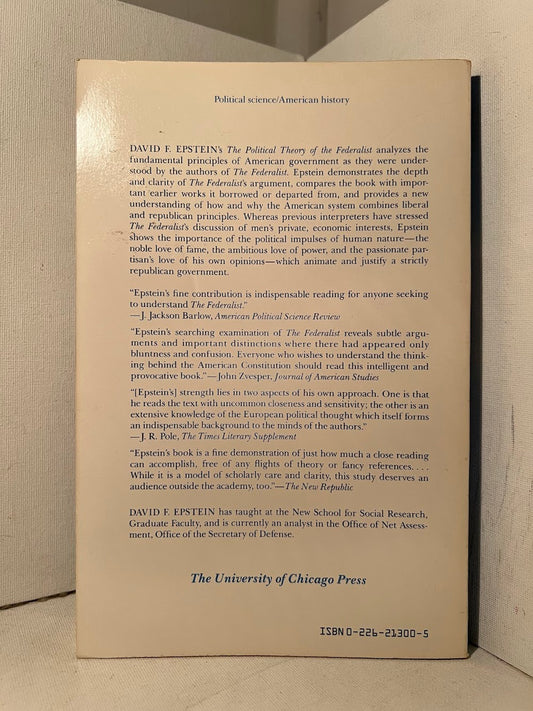 The Political Theory of The Federalist by David F. Epstein