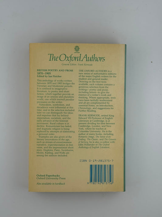 British Poetry and Prose 1870-1905