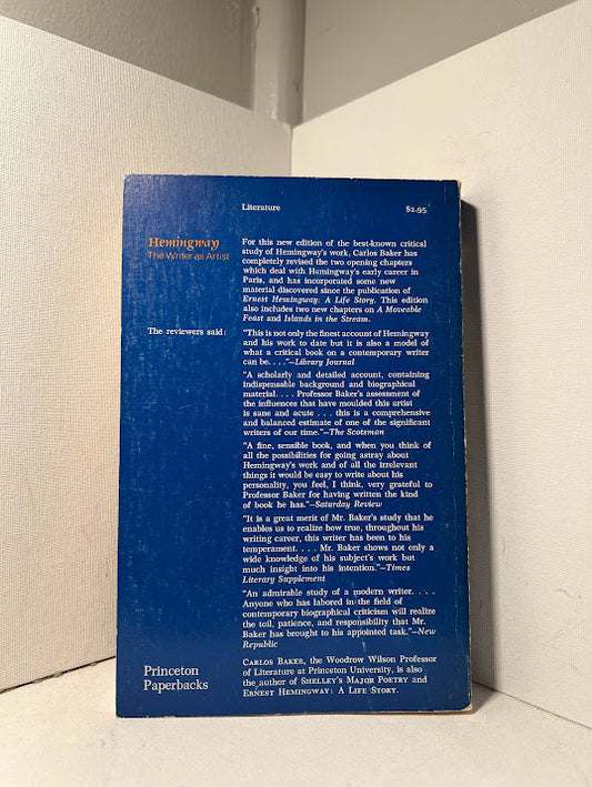 Hemingway The Writer As Artist by Carlos Baker