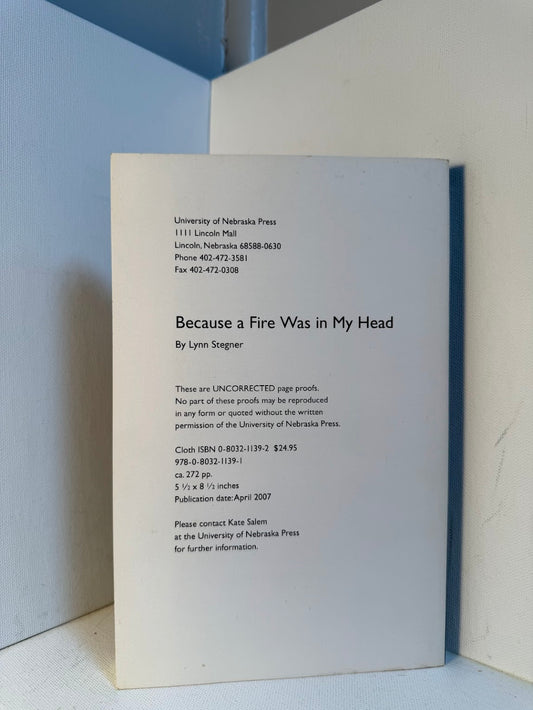 Because a Fire was in My Head by Lynn Stegner